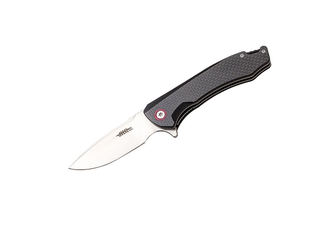 A JKR PRO-10013 összecsukható kés természetben és mindennapi használatra. A JKR PRO sorozat kései a legjobb minőségű anyagokból készültek, és a legigényesebb körülményeknek is ellenállnak. Az drop point alakú penge D2 acélból készült, hossza 8,3 cm, matt felületkezeléssel. A használt rozsdamentes acélt rendkívüli kopásállóság jellemzi. A markolat anyaga szénszálas G10-el kombinálva. A markolat ergonomikus kialakítású és tökéletesen illeszkedik a kézbe. A kés nagyon praktikus liner lock zárral van ellátva. A golyóscsapágyak magától értetődőek, amelyek még könnyebbé teszik a kés kinyitását. A JKR PRO modell egy mágneses záródású dobozt és egy tisztítókendőt tartalmaz.