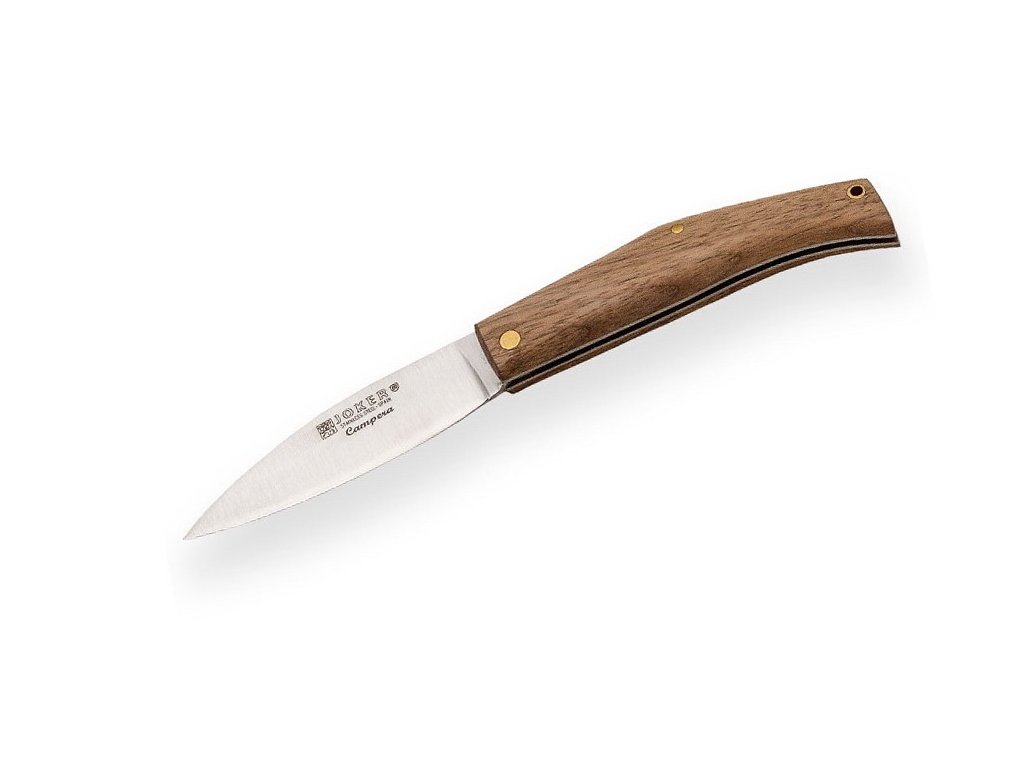 A Joker NN145 záróható kés kiválóan használható a szabadban, kempingezéshez vagy hosszabb túrázáshoz. Az enyhén ívelt diófa markolat természetes megjelenést kölcsönöz a késnek, és minden szabadtéri rajongónak tetszeni fog. drop pointyes penge szaténozott kivitelben. A kés klasszikus X50CrMoV15 rozsdamentes acélból készült, hossza 7,8 cm. A markolat végén egy lyuk található a nyakpánt felakasztásához. Ez a fajta hagyományos kés a megbízhatósága és sokoldalúsága miatt jellemző. A kés teljes egészében Spanyolországban készült.