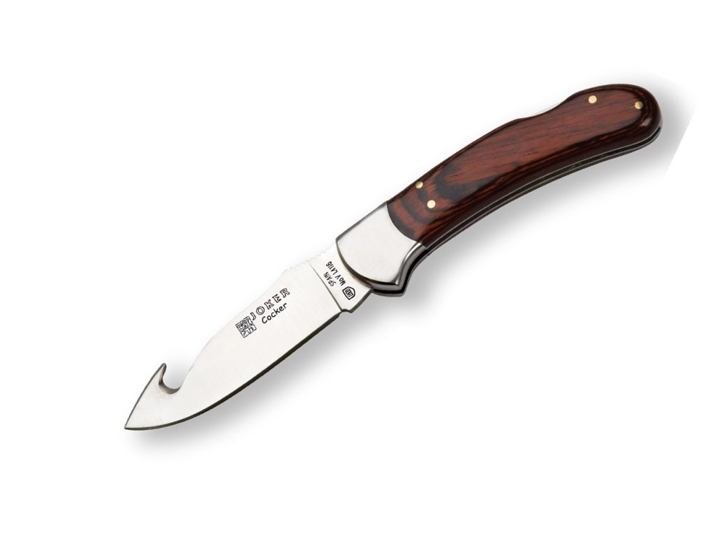 A Joker Cocker NR50 összecsukható kés egy közepes méretű erdei kés pakka wood markolattal. A kés ideális társ hosszú szabadtéri kirándulásokhoz a természetben. Kis súlyának köszönhetően mindennapi viseletre is alkalmas. A skinner típusú penge kiemelkedő, 9 cm-es horoggal van ellátva, és hagyományos X50CrMoV15 (1.4116) rozsdamentes acélból készül. Masszív penge matt felületkezeléssel. A kés biztonsági berendezéssel van felszerelve a nem kívánt nyitás ellen (visszazárás). A markolat és a penge közé rozsdamentes acél támaszt helyeztek el, hogy eltávolítsák a szennyeződéseket. Első pillantásra lenyűgözi majd az eredeti pakka fából készült nyél, ami egy nagyon erős anyag, amely több réteg gyantával impregnált fa furnér préselésével jön létre. A kés teljes egészében Spanyolországban készült.