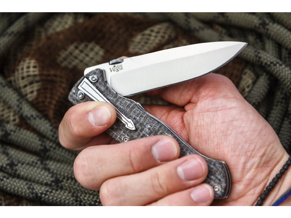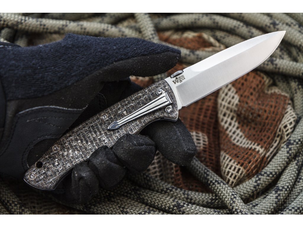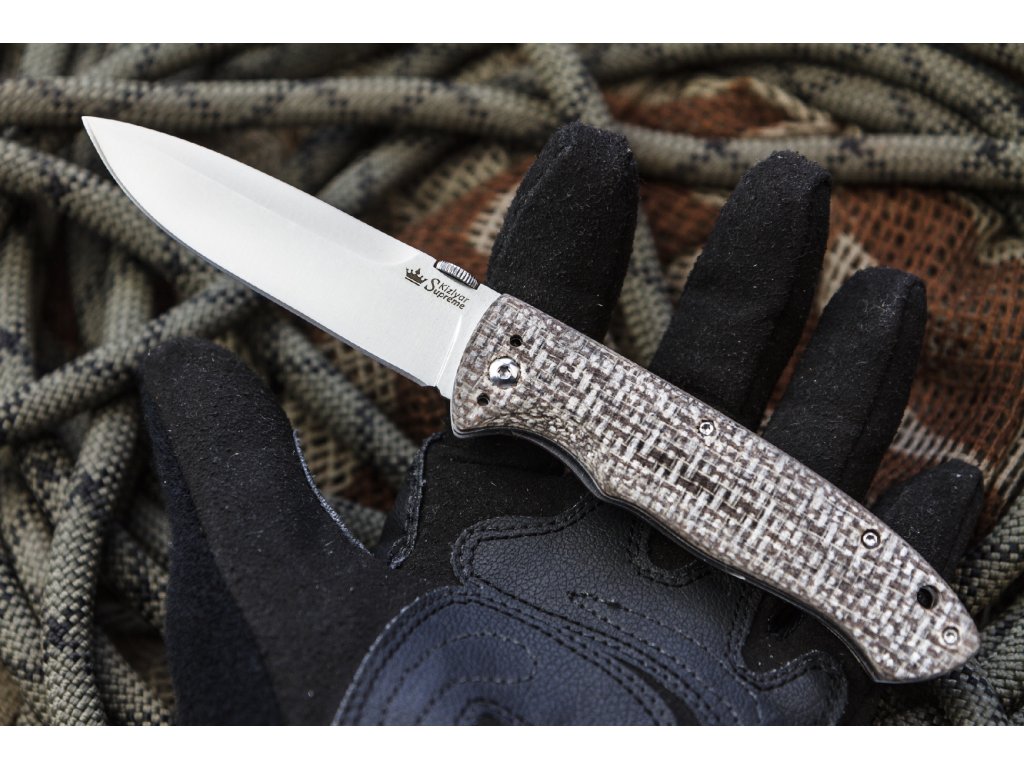 Összecsukható Kizlyar Supreme kés, alkalmas mindennapi használatra. A penge 440C acél, keménysége 58-60 HRC. Micarta markolat - modern anyag, tartós és kellemes tapintású. Erős liner lock biztosíték. Övre akasztható. A késhez ajándékdoboz tartozik.