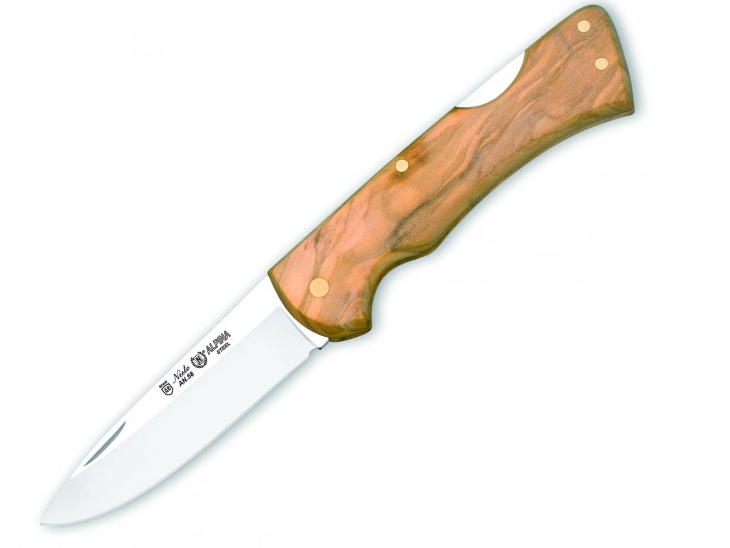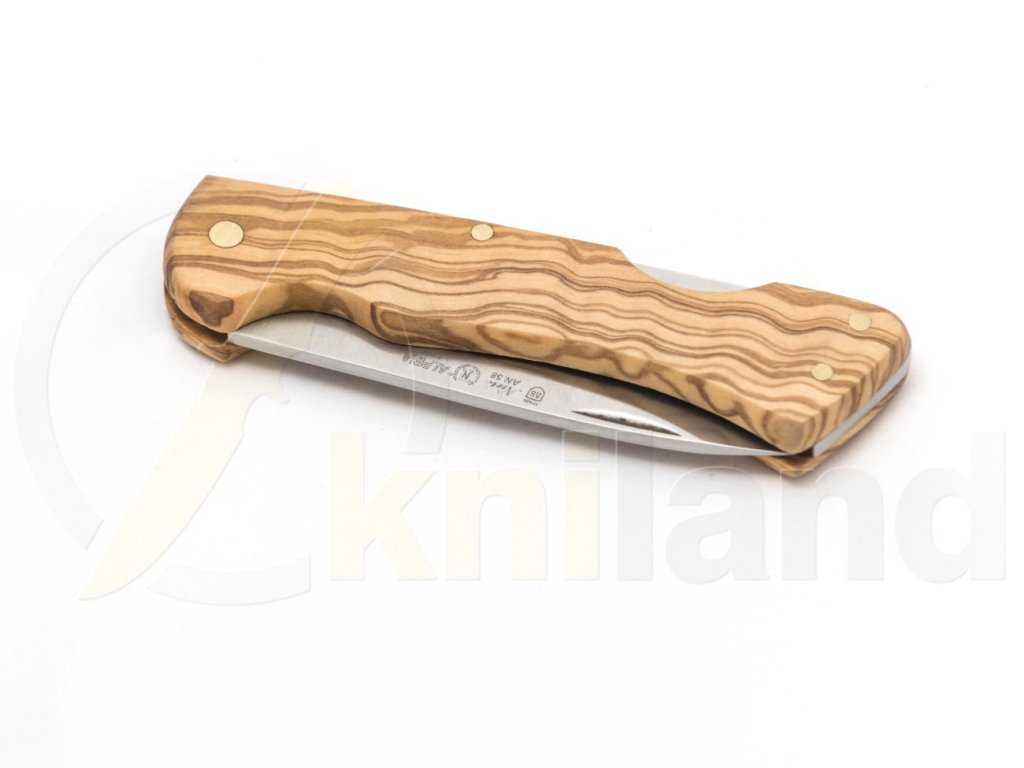 Miguel Nieto összecsukható kés . Olajfa markolat, backlock típusú biztosíték. AN-58 spanyol rozsdamentes acél penge, keménysége 58-60HRC. Ezt a tartós és kemény acélt közvetlenül Miguel Nieto fejlesztette ki.