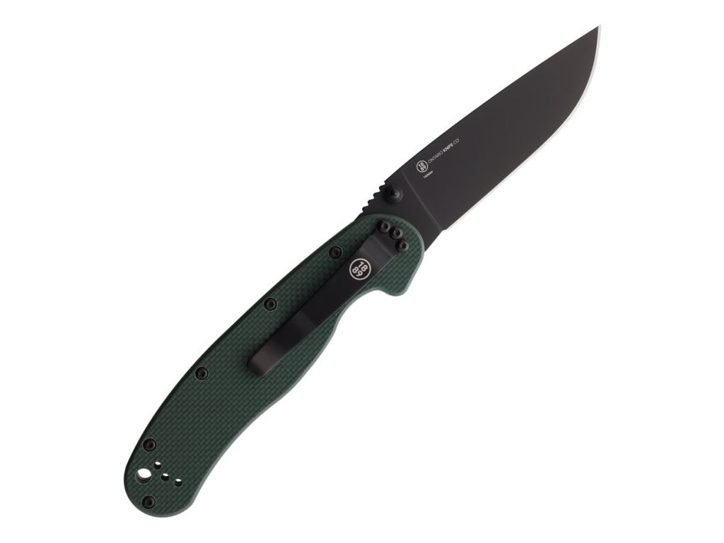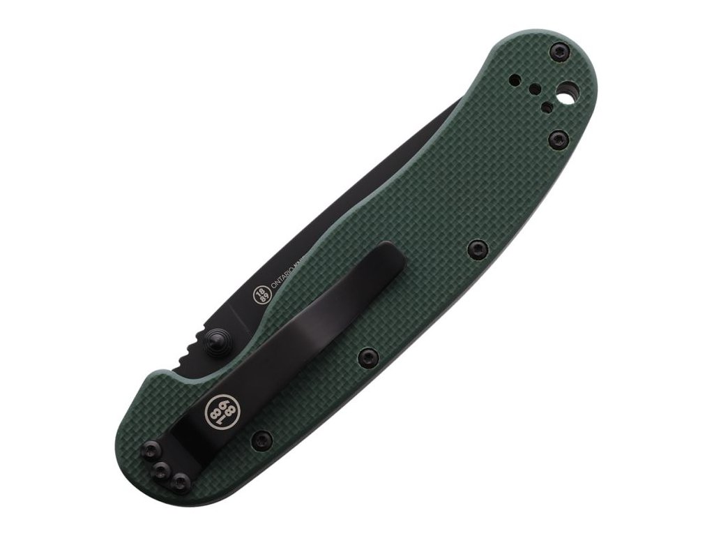 Az Ontario RAT-1 a Ontario Knife Company és a Randall's Adventure & Training együttműködésének eredménye. A RAT 1 egy sok éve bevált, megbízható zárható kés mindennapi használatra. A penge S35VN rozsdamentes acélból készült, fekete oxid bevonattal. A 8,9 cm hosszú, drop point formájú penge kiváló univerzális választás. A markolat zöld G10 anyagból készült. A kés liner lock zárral van ellátva. Az ergonomikus forma és a jól elhelyezett thumb stud biztosítják a kényelmes és stabil fogást. A markolat végén zsinórlyuk található, valamint a késen acél klip is van a rögzítéshez.