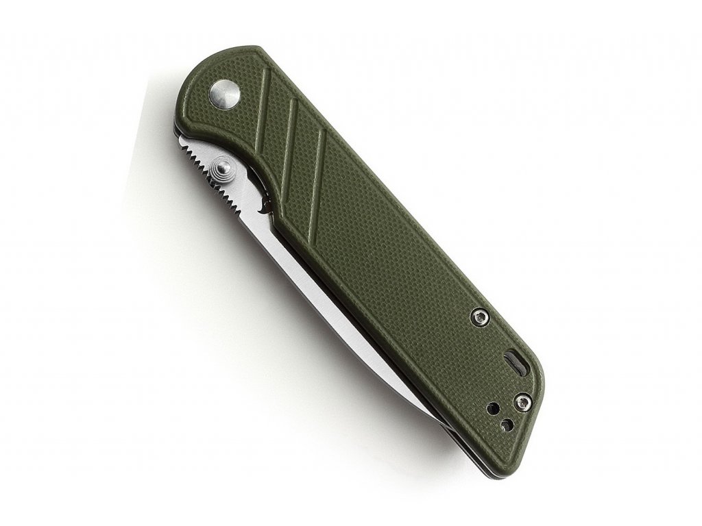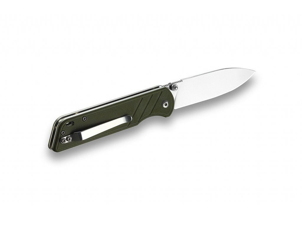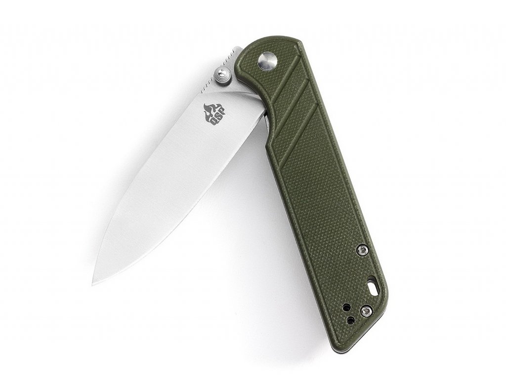 A QSP Parrot összecsukható kés minőségi anyagokból készült, megbízható kés. A 440C rozsdamentes acél penge 3 mm vastagságú, szatén felülettel és lapos élezésű. A markolat zöld G10-ből készült. A kés liner lock zárral és kétoldalas acél klipsszel van felszerelve a felakasztáshoz. Nyitás csappal a pengén.