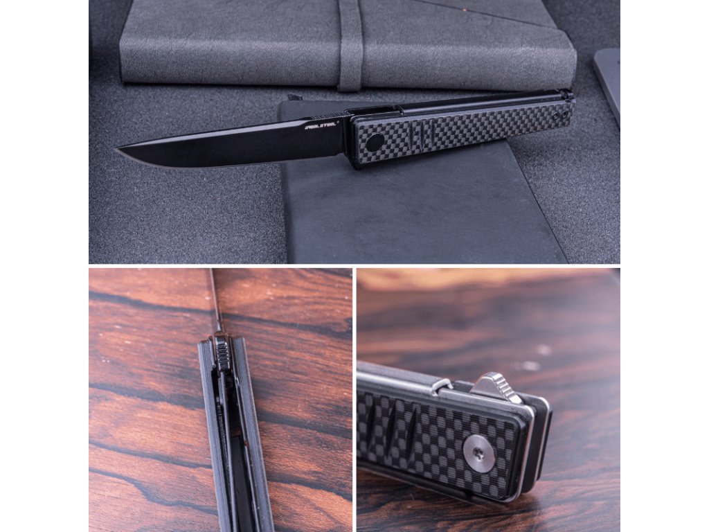 A Real Steel Kikashi CF RS8071CB egy flipper mechanizmusú zsebkés. A Kikashi zsebkés ötvözi a szamuráj kard esztétikájának pontosságát a hagyományok modern kézműves kidolgozásával. A 9 cm hosszú pengét 14C28N rozsdamentes acélból készítik, fekete PVD felülettel. A drop point forma és a sík él kiváló tulajdonságokat biztosít a mindennapi használathoz. A pengét könnyű kinyitni a forgó csap és golyóscsapágy segítségével. A markolat G10-ből készült, karbon felülettel. Kétoldalas zsebklippel rendelkezik, amely lehetővé teszi a kés mély hordását, és alkalmas bal- és jobbkezeseknek egyaránt. A markolaton zsinórfurat található.