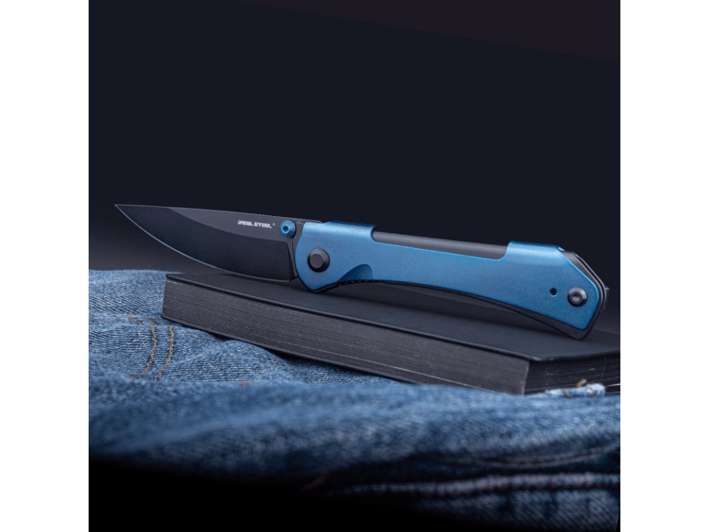A Real Steel Sylph Linerlock Blue RS7141BB egy modern megjelenésű zsebkés, amely a klasszikus formát ötvözi a korszerű anyaghasználattal és kiváló ergonómiával. A kés nyitását thumb stud (hüvelykujj-támasz) segíti, míg a biztonságos használatról liner lock zárszerkezet gondoskodik. A 8,26 cm hosszú penge Nitro-V rozsdamentes acélból készült, stonewashed felületkezeléssel. A drop point forma és a lapos leélezés kiváló vágási teljesítményt nyújtanak mindennapi használatra. A markolat fém, kék színű, és ergonomikus kialakításának köszönhetően kényelmesen illeszkedik a kézbe. A kés zsebklipsszel is rendelkezik, amely lehetővé teszi a mélyen ülő, diszkrét hordozást.