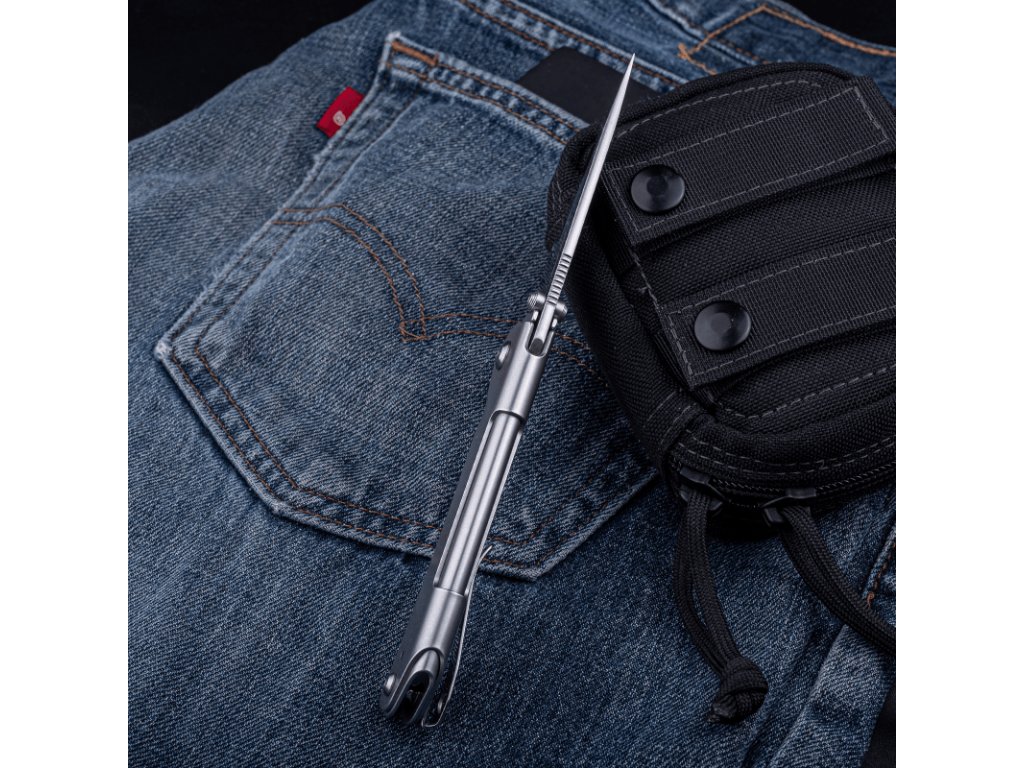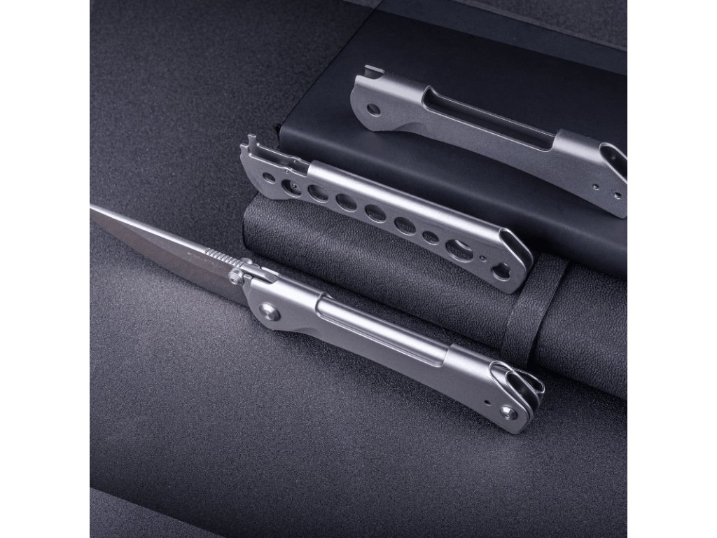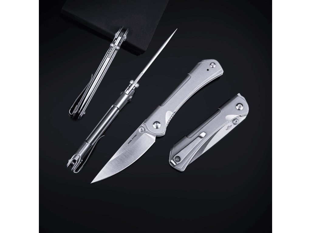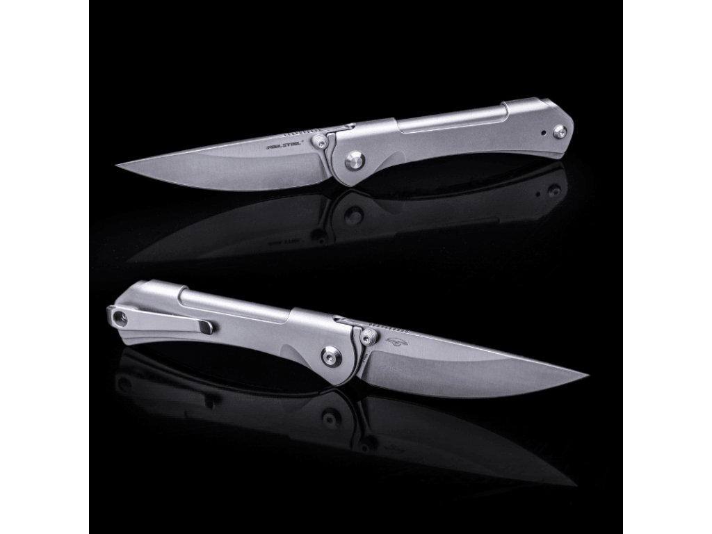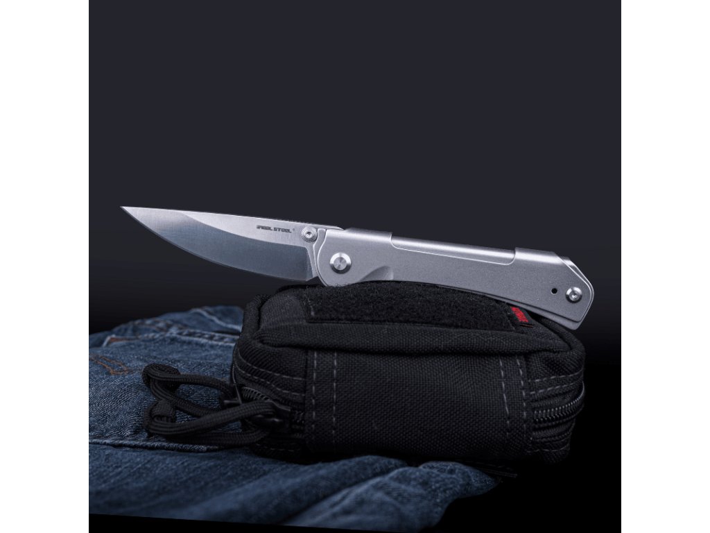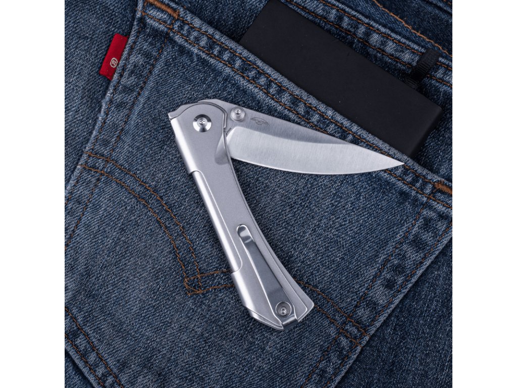 A Real Steel Sylph egy modern kivitelű zsebkés, amely a klasszikus formavilágot ötvözi a letisztult dizájnnal és megbízható működéssel. A nyitást thumb stud (hüvelykujj-támasz), a biztos záródást liner lock mechanizmus biztosítja. A 8,26 cm hosszú penge Nitro-V rozsdamentes acélból készült, szatén felületkezeléssel. A drop point pengeforma és a lapos leélezés kiváló vágási tulajdonságokat kínálnak a mindennapi használat során. A markolat fém, szürke színben, ergonomikus kialakítása kényelmes és biztos fogást nyújt. A kés mélyen ülő zsebklipsszel rendelkezik, amely lehetővé teszi a diszkrét és biztonságos hordozást.