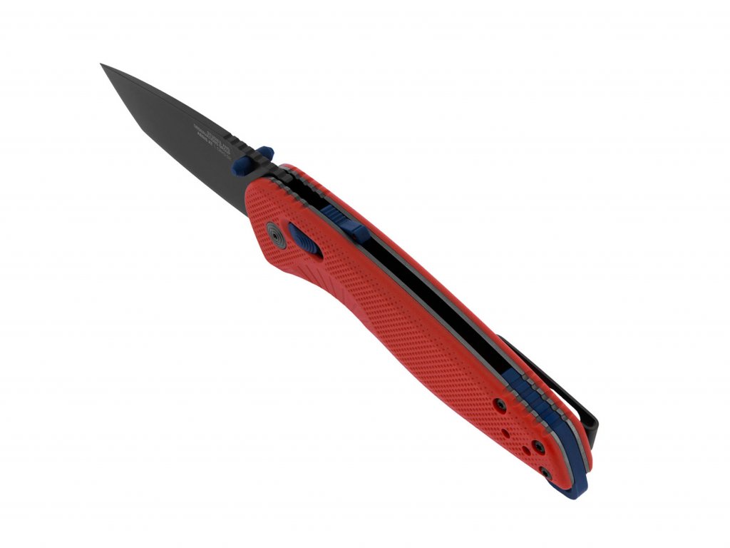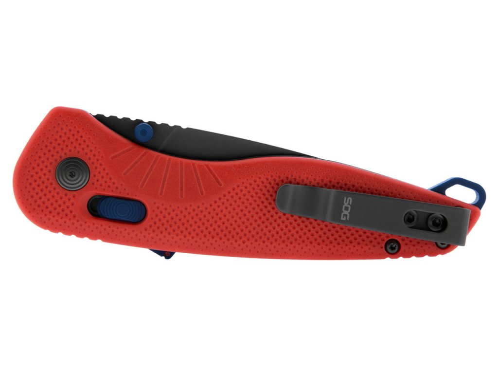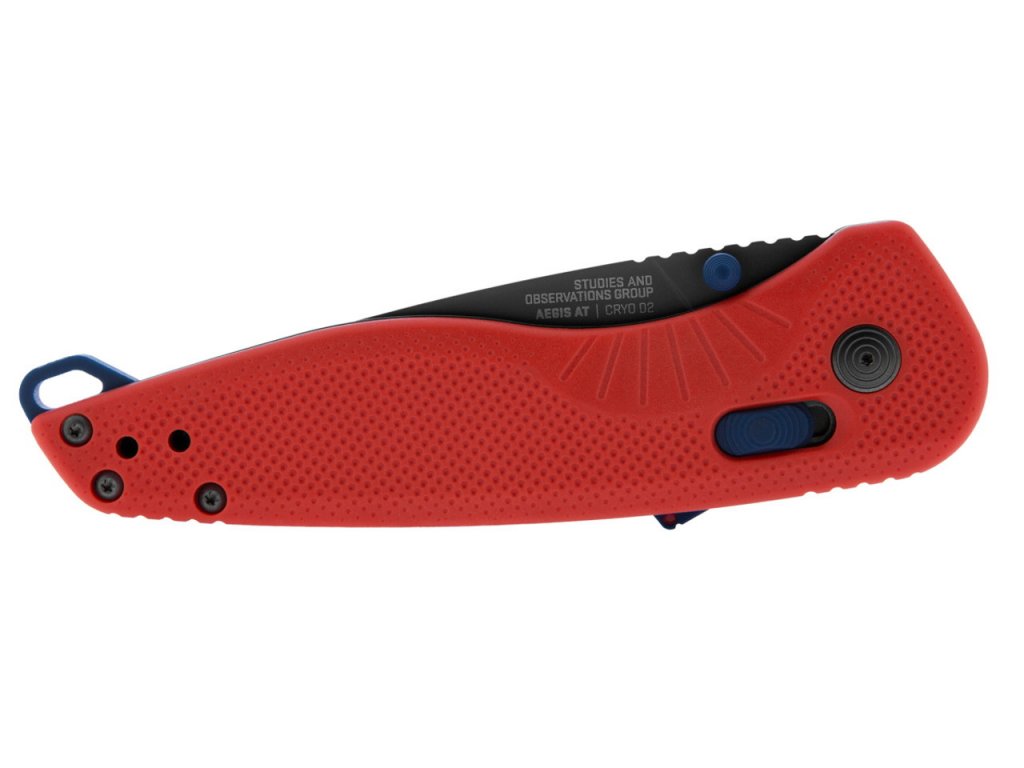 A kültéri használatra tervezett Aegis AT kés gyors asszisztens nyitással és az innovatív kétkezes SOG AT-XR zárral rendelkezik. A tanto alakú penge kriogenikusan kezelt D2 szerszámacélból készült, 7,9 cm-es lapos élezési hosszal és titán-nitrid bevonattal. A markolat pengéi GRN-ből (erős és tartós kompozit anyag) készültek, csúszásmentes kivitelben. Kétoldalas rozsdamentes acélból készült klipsz a kés felakasztásához. Egykezes nyitás a pengén lévő csap segítségével. A kés piros-indigó színű kivitelben.