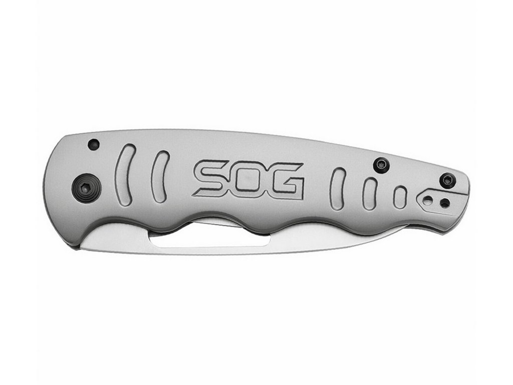 Egy összecsukható kés a mindennapi felhasználók számára. Egyszerű, őszinte zsebkés SOG Sharp pengével és framelockal. A 8,9 cm hosszú, 8Cr13MoV acélból készült penge bead blast és lapos élezéssel rendelkezik. A markolat rozsdamentes acélból készültek, matt felülettel. A kétoldalas, rozsdamentes acél kés akasztókapocs mély felfüggesztést tesz lehetővé, így a kés nem zavarja. Egykezes nyitás a pengén lévő furat segítségével.