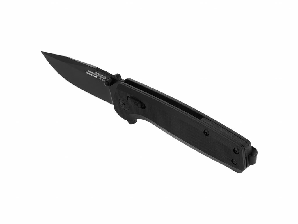 A SOG Terminus XR egy tartós, összecsukható kés mindennapi használatra. A markolat fekete G10-ből készült. A Terminus egy közepes méretű EDC, kétkezes SOG XR Lock biztonsággal. A penge kriogénkezelt D2 szerszámacélból készült lapos élezésű, 7,5 cm hosszú és fekete felülettel. A kétoldalas, rozsdamentes acél kés akasztókapocs mély felfüggesztést tesz lehetővé , aminek köszönhetően a zsebben lévő kés nem vonzza magára a figyelmet.