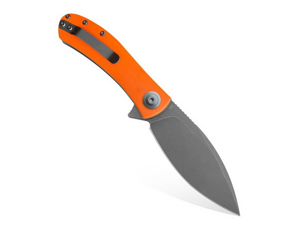 A bevált D2 szerszámacélból készült penge lapos élezésű, 7,6 cm hosszú és szürke stonewash kivitelű. A penge sima járását kerámia csapágyak biztosítják. A markolat narancssárga G10-ből készült, és lekerekített formájának köszönhetően nagyon kényelmes a fogása. A rozsdamentes acélból készült klipsz a pengéhez illeszkedik.