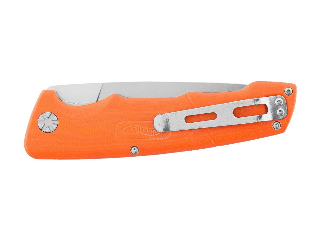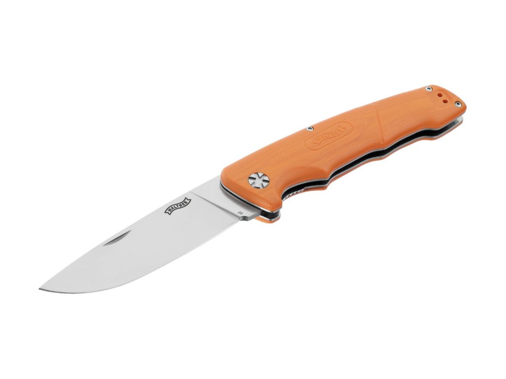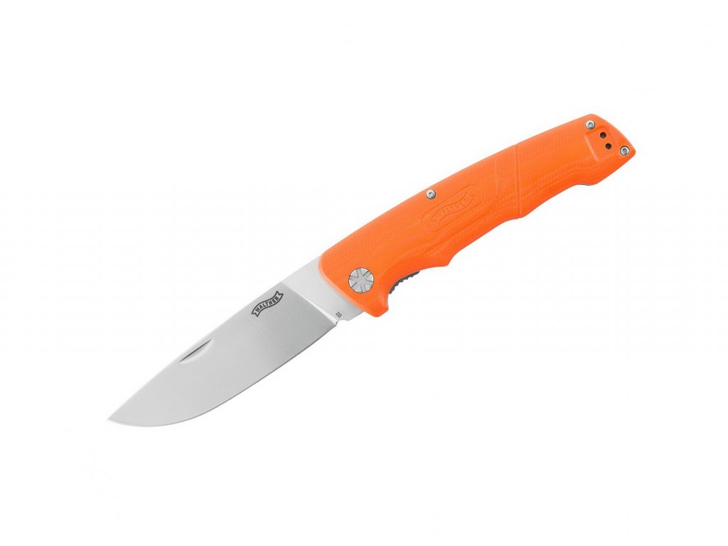A rendkívül praktikus Walther HBF 2 összecsukható kés feltűnő színben nem hiányozhat egyetlen jó vadász felszereléséből sem. A Hunter's Best Friend elnevezés arra utal, hogy ezt a kést szabadtéri tevékenységekhez használják a természetben. A Walther HBF 2 drop point D2 acélból készül, matt felületkezeléssel és lapos élezéssel, hogy jó stabilitást érdekében. A 10,2 cm hosszú penge elég kompakt a vad részletes tisztításához. Az élénk narancssárga színű ergonomikus kialakítás szilárd fogást biztosít a maximális precíziós munkavégzéshez. A kés markolata G10, a belső betétek pedig rozsdamentes acélból készültek. Az akasztócsipesz megfordítható, így jobb- és balkezesek is használhatják. A csomag tartalmaz egy narancssárga nylon tokot.