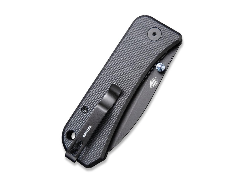 A We Knife Banter egy összecsukható kés, amely alkalmas mindennapi feladatok elvégzésére, akár otthon, akár a szabadban tölti a napját. A penge CPM S35VN rozsdamentes acélból készült. A drop point formájú penge hossza 7,3 cm, lapos csiszolással rendelkezik. A penge megbízható liner lock zárral van ellátva.