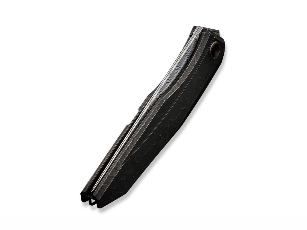 Bemutatjuk a luxus damaszkuszi acélból készült záróható kést a We Knife-tól. Ez a bemutató darab egy limitált kiadás (csak 150 darab az egész világon), EDC (mindennapi viselet) és gyűjtők számára készült. Teljes hossza 22,5 cm, súlya 123 g. Ebből a teljes hosszból a penge 10 cm-es, 4 mm vastagságú. A penge egy elülső flipperrel nyílik, és keretzárral záródik. A Cybernetic WE22033-DS1 kerámia golyóscsapágyakkal is rendelkezik, amelyek biztosítják a penge zavartalan működését.