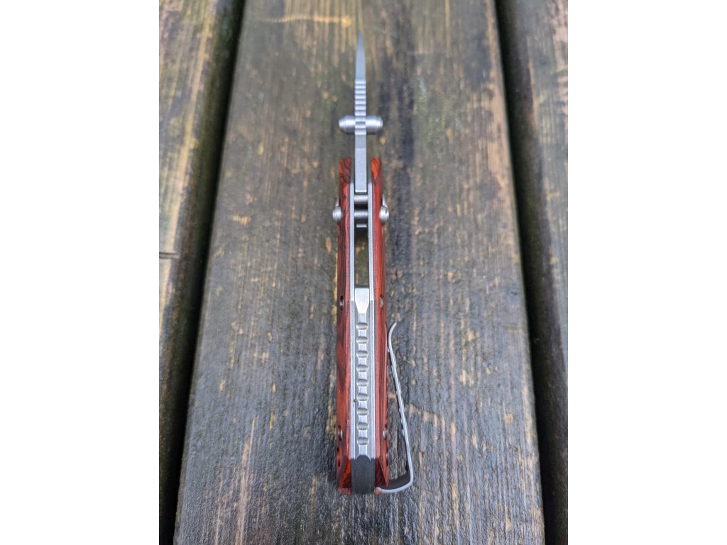 Willumsen Red E Two-Tone kövirosewood egy kisebb típusú összecsukható kés, 7 cm-es pengehosszúsággal. A kés alkalmas a mindennapi tevékenységekhez, könnyen hordozható és tökéletes fogást biztosít. A kés pengéje Sandvik 14C28N acélból készült, stonewash felülettel, lapos élezésű és klasszikus drop point formával. A markolat kemény fából készült és kényelmes fogást biztosít. Viheti a kést a természetbe vagy a mindennapi tevékenységekhez. A csap lyukkal nagyon könnyen kinyithatja a kést. Axis Lock biztosítékot tartalmaz, amelyet különösen erősebb típusú késekhez használnak. A kés kétoldalas klipszel van felszerelve a felakasztáshoz. A kés dizájnját maga Mikkel Willumsen tervezte.