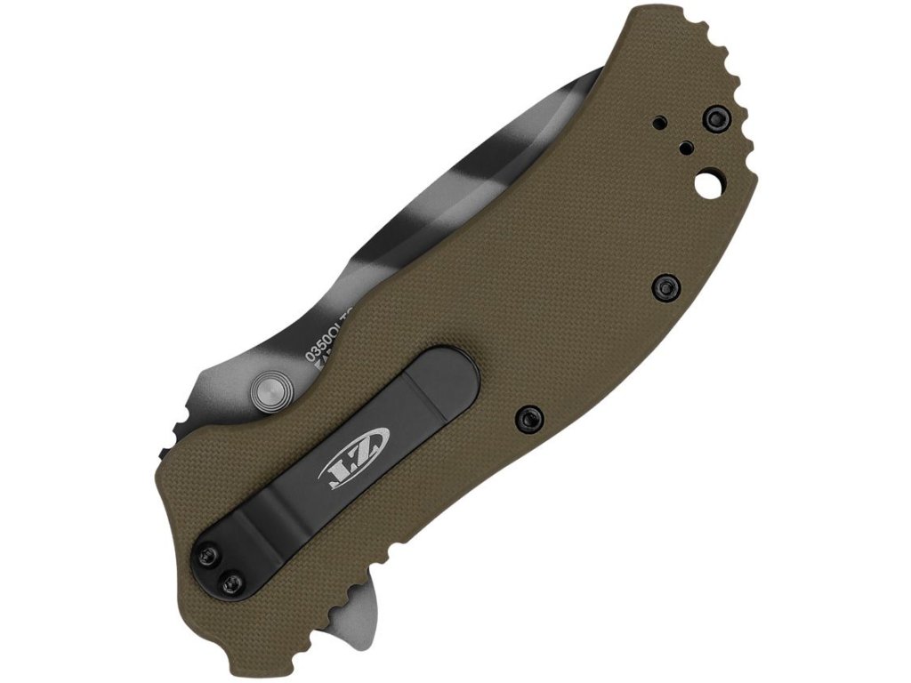 Egy klasszikus modell, amelyet 2009 óta gyártanak. A Zero Tolerance ZT-0350OLTS egy masszív EDC záróható kés, melynek súlya 176 g. A 8,89 cm hosszú penge exkluzív CPM-Magnacut acélból készült, rendkívül erős, korrózió- és kopásállósága magas. A penge tigriscsíkos kivitelű. A markolat pengék texturált zöld-barna G10-ből készültek. A kés könnyű nyitását a SpeedSafe® asszisztens nyitórendszer biztosítja. A markolaton egy zsinórlyuk található. A kés felakasztókapcsa megfordítható (jobb- és balkezes felhasználók számára egyaránt alkalmas), és mind a négy pozícióban megfordítható. liner lock. A kés az USA-ban készült.