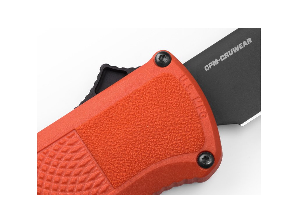 Grivory markolat (rendkívül erős kompozit, amely hőre lágyuló poliamidok és gyanta kombinációjából készült) piros-narancs színben. A kés mindkét oldalán megfordítható akasztókapoccsal és egy nyaklánclyukkal - nyakláncpánttal - rendelkezik. A kés az USA-ban készült.