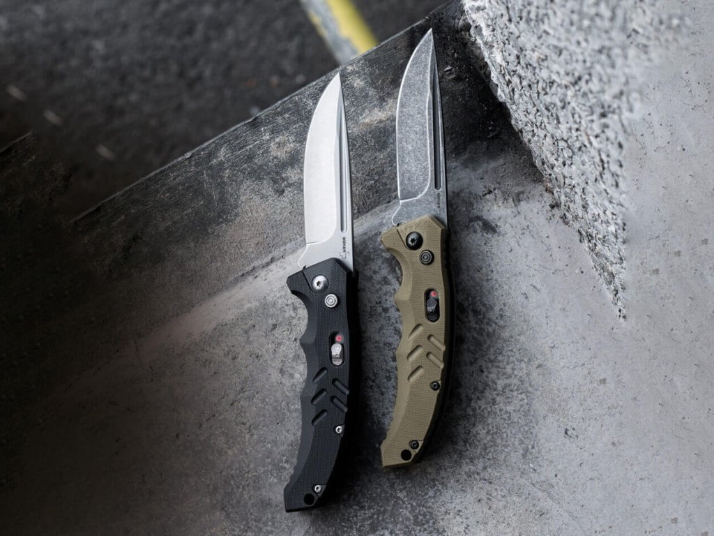 Pop-up (automata) kés, amely alkalmi hordozásra és taktikai használatra egyaránt alkalmas. A 7,8 cm hosszú, D2 acélból készült, fekete stonewash kivitelű, lapos élezésű penge. Texturált markolat barna G10-ből. Késnyitás nyomógombbal, nyomógombos biztonsággal. Klipsz a kés felakasztásához, lyuk a nyaklánc felfűzéséhez (nyaklánclyuk).