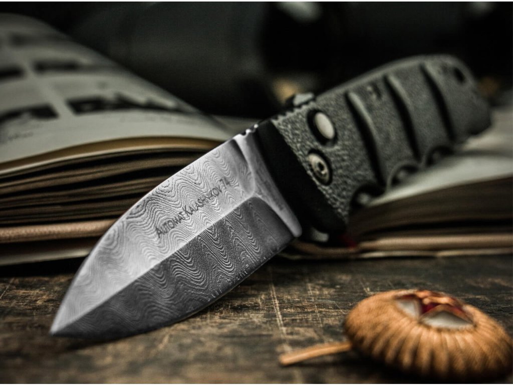 Ez a pop-up kés a népszerű, különleges formáiról ismert Kalasnyikov sorozat részeként készült. A Böker Plus úgy döntött, hogy megpecsételi e sorozat sikerét egy gyűjtői darabbal, amelynek pengéje 192 rétegű damaszkuszi acélból készült .
