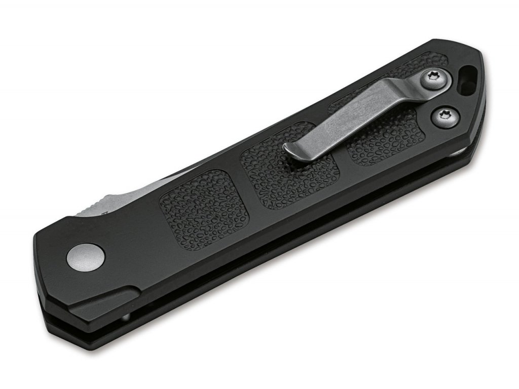 A Böker Plus Kihon Auto pop-up kés alkalmas alkalmi viseletre, valamint taktikai használatra is. A 8 cm hosszú AUS-8 acél penge stonewashed felülettel lapos kiélezéssel rendelkezik. Fekete,texturált, alumínium markolattal rendelkezik. A kés kinyitása nyomógombbal. Késbilincs, zsinórlyuk. A kést Lucas Burnley tervezte.