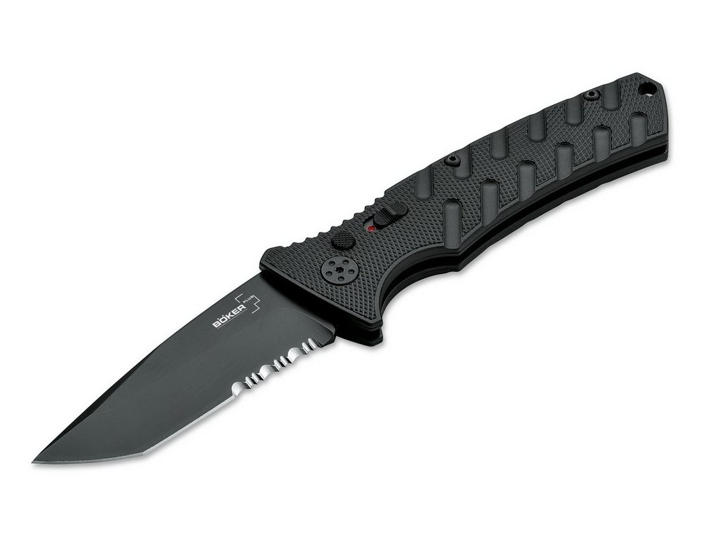 A Böker zsebkés ideális mindennapi használatra. 8,5 cm hosszú penge AUS-8 acélból, fekete kivitelben. Texturált alumínium markolat a biztonságos fogás érdekében. Push lock típusú biztosíték (gomb).