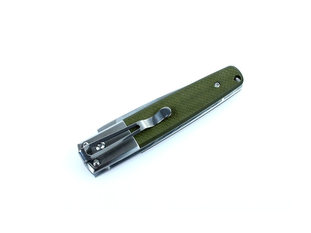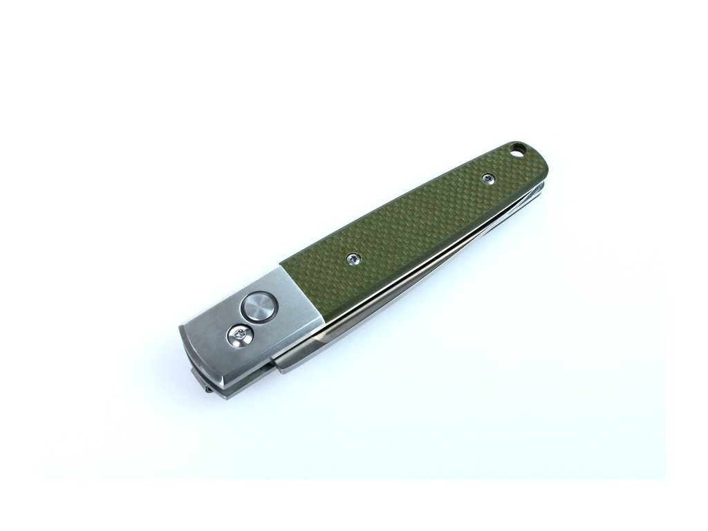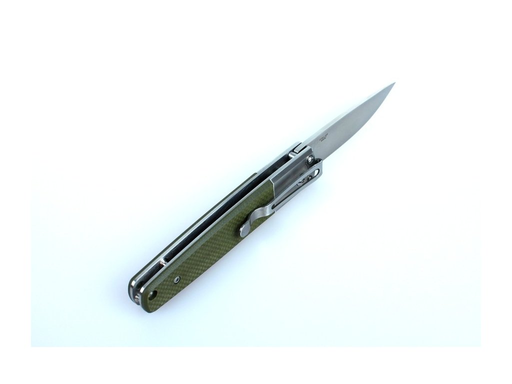 A kés pengéje 440C típusú rozsdamentes acélból készült, hossza 8,5 cm, vastagsága 3 mm, és 58-60 HRC keménységűre van edzve. A pengét szatén bevonattal látták el. A markolat zöld színű G10 anyagból készült, és nagyon kényelmes fogású. Összességében ez a kés nyitott formában 20 cm-es teljes hosszúságot kínál, 135 g-os tömeggel. A kés nyitott formában a népszerű gombzáras mechanizmussal rögzíthető. Ha egy jó és megbízható kést szeretne mindennapi használatra, akkor ez a modell megfelel az elvárásainak.