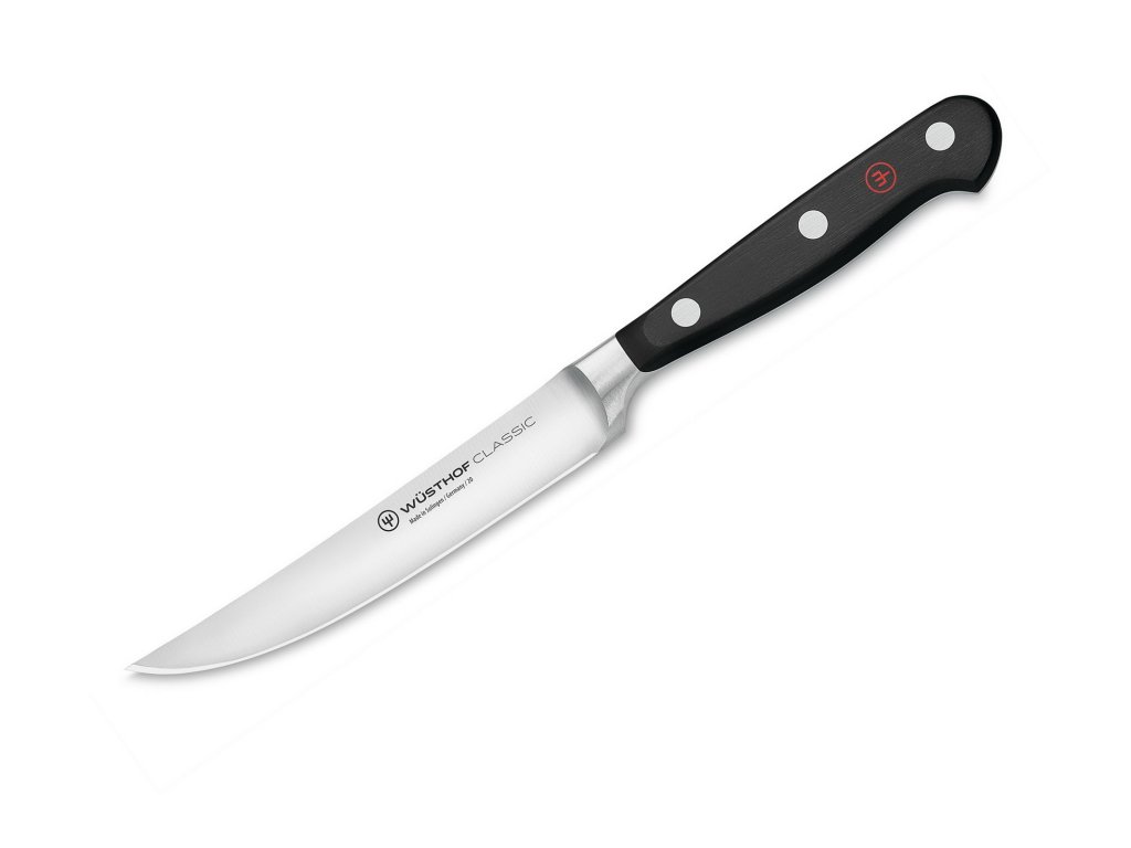 A Wüsthof Classic Steak Knife 12 cm-es pengehosszúságú, kézzel kovácsolt konyhakés hagyományos kialakítással és háromszoros szegecseléssel. A Classic sorozat ideális választás azoknak az otthoni szakácsoknak, akik új konyhát rendeznek be, és a prémium kategóriás Wüsthof márkán belül megfizethető felszerelést keresnek, vagy régi konyhai eszközeiket szeretnék újakra cserélni. A Wüsthof Classic sorozat minden kését egyesíti az elegancia, a hatékonyság és a nagy ellenállóképesség, így minden környezetbe kiválóan illeszkednek.