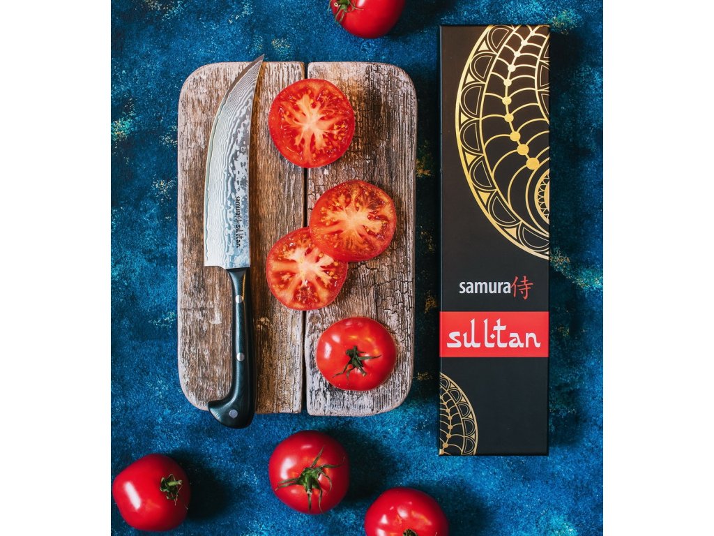 A Sultan széria Samura konyhai kés kivételes és nagyon szokatlan típusú konyhai kés, amelyet az ősi keleti kések inspiráltak. A rendkívül éles japán damaszkt acél pengel (67 acélréteg, keménység 61 HRC-ig) és a modern G10 kompozit anyagból készült nagyon tartós ,arkolatát kínálják. Szép papír-műanyag dobozban vannak, tehát ajándékként is alkalmasak.