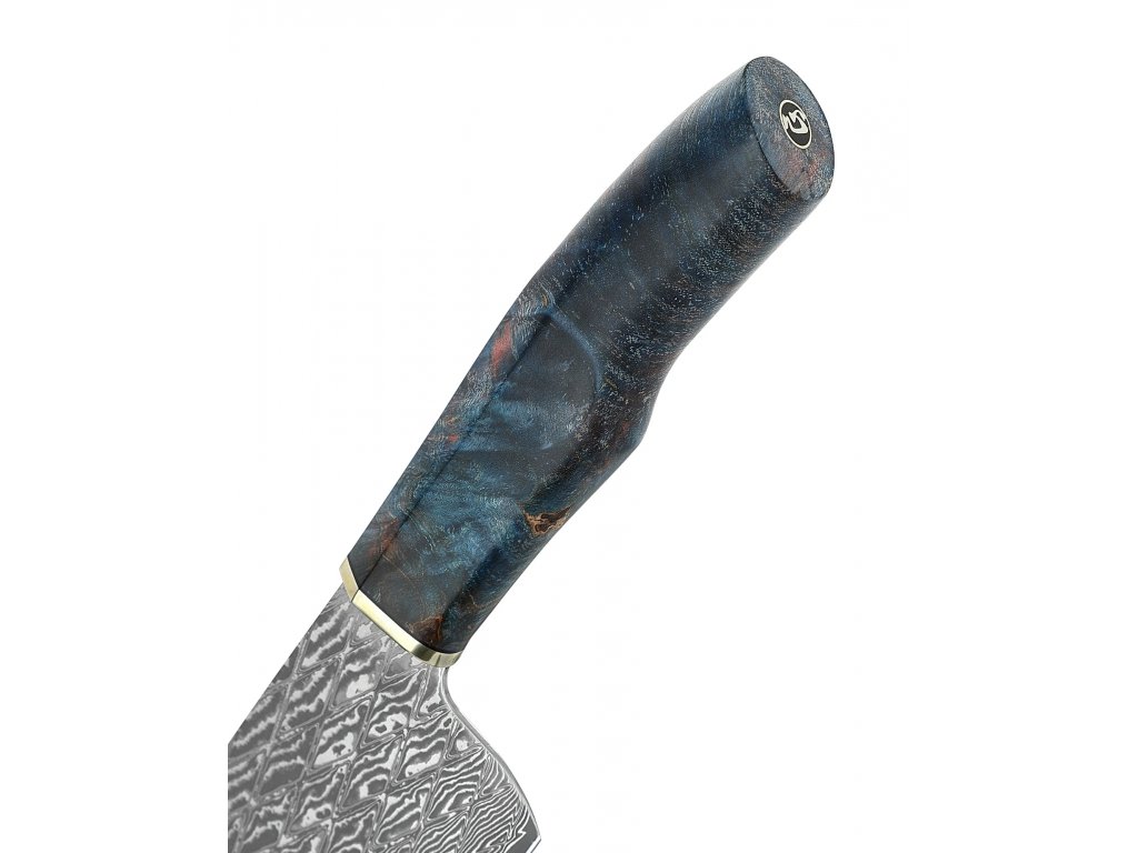 Kék színű, stabilizált juharfából készültmarkolat.