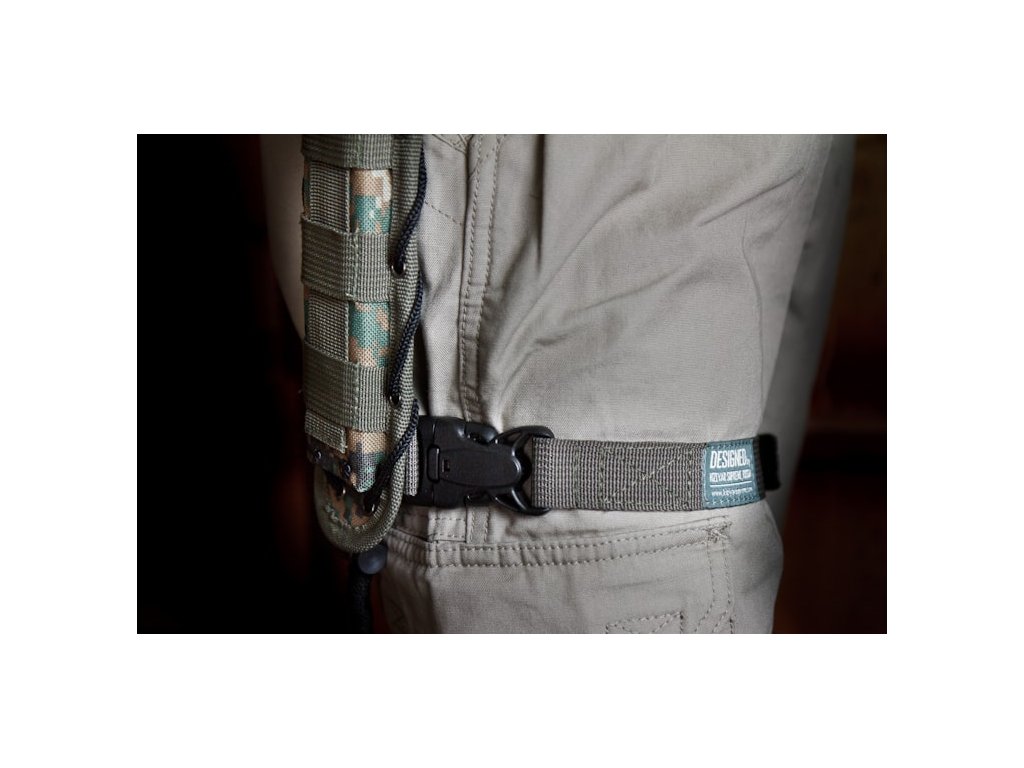 Lábszíj a késtartó utólagos rögzítéséhez. Megakadályozza a tok elmozdulását futás, ugrás vagy bármilyen más mozgás közben. Az öv szilárd ballisztikus nylonból készül, és biztonsági zárral rendelkezik, amely megakadályozza a nem kívánt nyitást. Az öv hossza állítható, a maximális hossza akár 100 cm. Szín - sötétzöld.