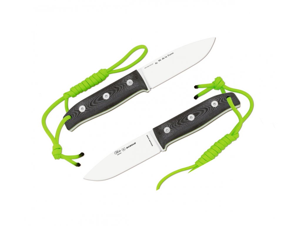 A Bosque modell a Miguel Nieto 2018-as újdonsága. Kiváló minőségű, közepes méretű kés, alkalmas természetbe, vadászatra vagy túrázáshoz. A full tang konstrukció garantálja erejét és megbízhatóságát. A penge hossza 10 cm, lapos leélezésssel és Böhler N695 minőségi acélból készült, amely magasan kopásálló. Markolata G10 amely által megbízható nehéz körülmények között is. Minőségi kidolgozású sötét marhabőr tok kapcsolással a felső részén.