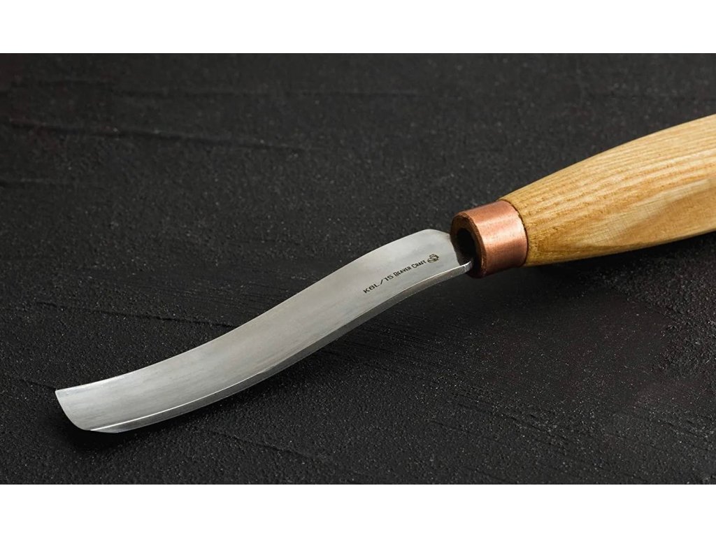 Hosszú, ívelt – üreges véső, amely praktikus eszköz az anyag mély és folyamatos kiszívásához. Alkalmas kanalak és tálak faragására. A BeaverCraft szerszámai borotvaélesek és a dobozból azonnal készen állnak a faragási munkákra. A penge 65G szénacélból készült, 57-59 HRC keménységig edzett és puha és kemény fával való megmunkálására alkalmas. Kézzel van élezve és polírozva. Szélessége 15 mm. A markolat olajjal impregnált kőrisfából készült.
