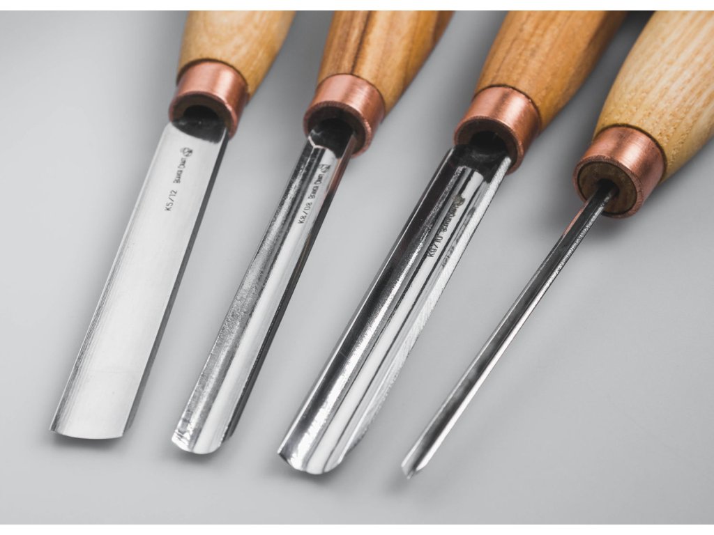 BeaverCraft négyrészes faragó vésőkészlet. A készlet tartalmaz egy K5 / 12 üreges faragó vésőt, egy K8 / 08 üreges faragó vésőt, egy K9 / 10 üreges faragó vésőt és egy V-profilú K12 / 02 vésőt. 57 - 59 HRC keménységig edzett szénacél pengék. A szénacél sokáig éles és könnyen csiszolható, de inkább rozsdásodásra hajlamos (a kést használat után alaposan meg kell tisztítani és szárítani, a pengét is érdemes időnként olajjal áttörölni). A kőrisfa nyél enyhén viaszolt. Vászontokba csomagolva. A készlet tartalmaz még bőrt a penge élezésére illetve csiszolópasztát. A vésők csak kézi használatra szolgálnak, kalapács használata nem javasolt.