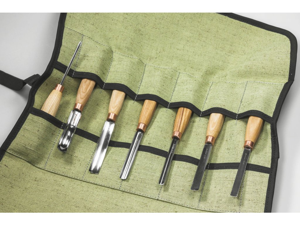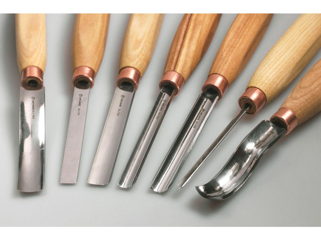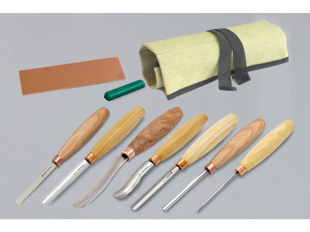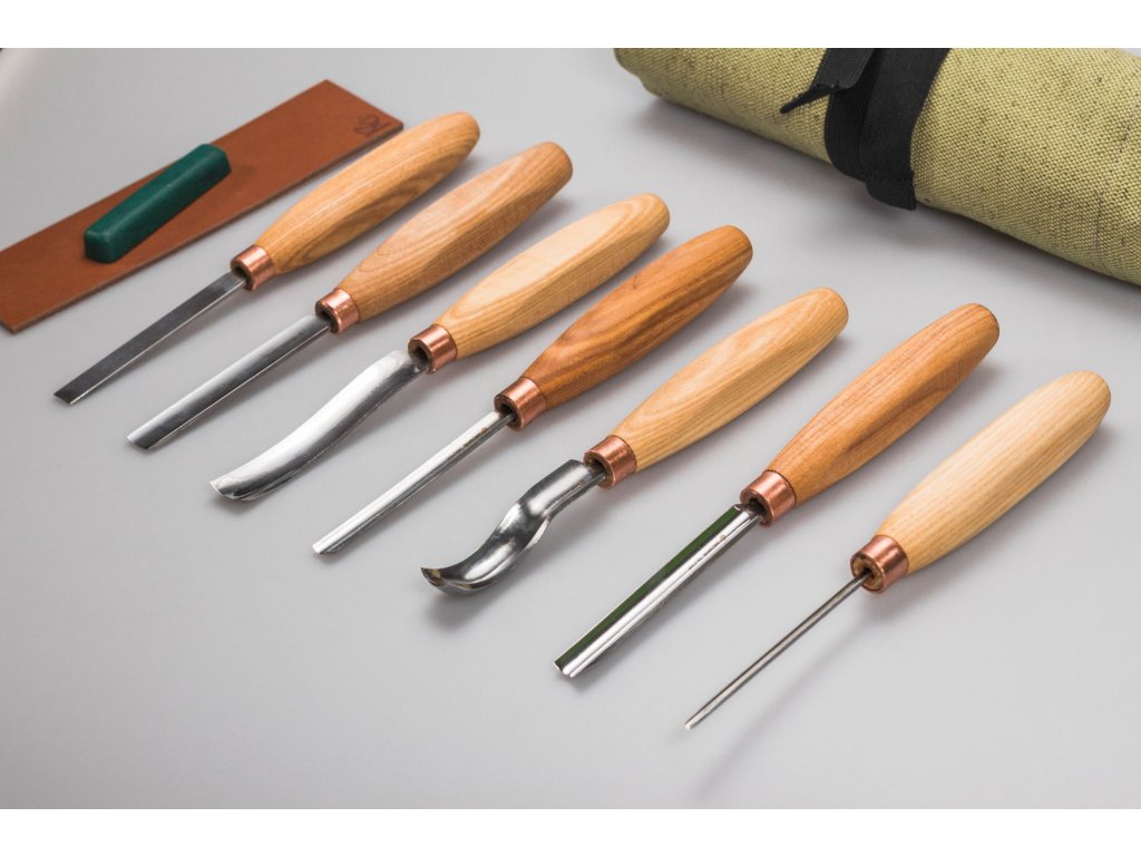 Hét részes BeaverCraft vésőkészlet. A szénacél sokáig éles és könnyen csiszolható, de inkább rozsdásodásra hajlamos (a kést használat után alaposan meg kell tisztítani és szárítani, a pengét is érdemes időnként olajjal áttörölni). A kőrisfa nyél enyhén viaszolt. Vászontokba csomagolva. A készlet tartalmaz még bőrt a penge élezésére illetve csiszolópasztát. A vésők csak kézi használatra szolgálnak, kalapács használata nem javasolt.