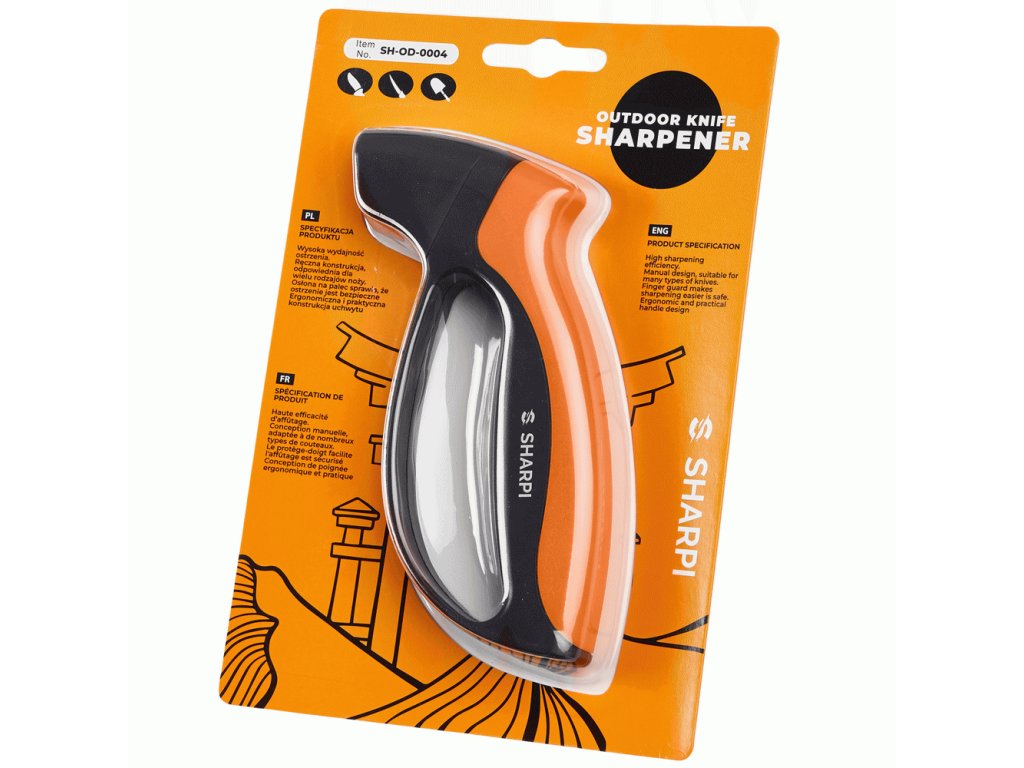 A Sharpi kézi karbid fenőszerszám széles körű késfajtákhoz készült. Hatékonyan élezi a konyhai késeket, zsebkéseket, halászkéseket, valamint kültéri szerszámokat is. Az ujvvédő biztonságos és pontos élezést biztosít. Az ergonomikus markolat és a könnyű szerkezet megkönnyíti a használatot minden körülmények között. A 360 grit durvaság nagyon tompa késekhez alkalmas. Az innovatív tulajdonságok, a magas teljesítmény és az univerzális használat minden késrajongó elvárásainak megfelel.